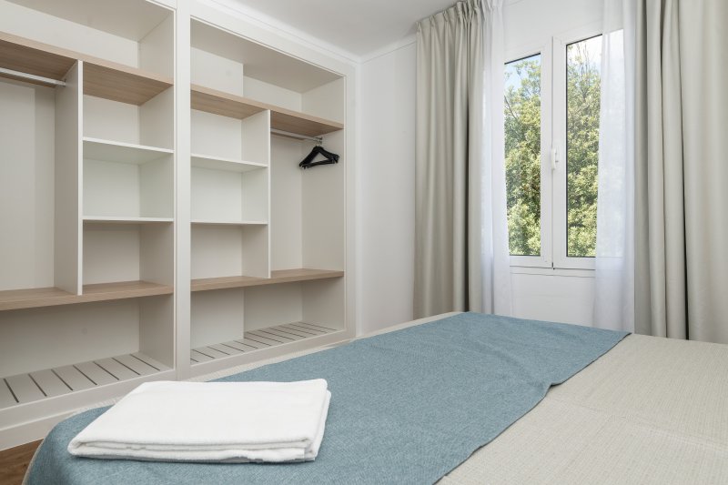 This second floor apartment, without an elevator, welcomes you with a practical and comfortable kitchen-living-dining room. It is equipped with AC (only cold air) and TV with satellite channels. The kitchen is open and offers a ceramic hob. Please note that the kitchen equipment is basic and that there is no washing machine, no iron, and no ironing board available. There are two bedrooms with twin beds, air conditioning (cold air only) and wardrobe. One of them has space for a cot and a high chair, and the second has access to a terrace. The extra guest will sleep on the sofa bed. The modern bathroom features a shower.